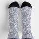 Custom Dark Navy Blue White Paisley Pattern Socks