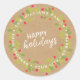 Custom Dark Red Holly Berries Green Leaves Wreath Classic Round Sticker