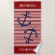 Enjoy total comfort at the beach or sitting poolside, and cool and dry off with this fun, colourful and comfy beach towel. With room to customise or personalise with a name, monogram, initials or (limited) text of your choice. Stand out in the sand with this beautiful contemporary ship anchor on a classic dark red and white stripes pattern background. Modern and stylish design for the sailor or boater, ocean or sea, boating, sailing or water sports lover.
