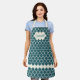 Custom Dark Teal Green Blue Ivory Trellis Pattern Apron
