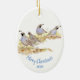 Custom Dated Christmas California Quail Bird Art Ceramic Ornament