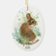 Custom Dated Christmas Plant Cute Bunny Rabbit Ceramic Ornament