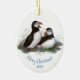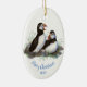 Custom Dated Christmas Puffin Ocean Bird Ceramic Ornament