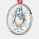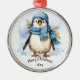 Custom Dated Cute Winter Penguin Bird Christmas Metal Ornament