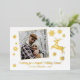 Celebrate the season with this elegant gold foil holiday card, featuring a graceful reindeer and delicate snowflakes against a crisp white background. A shimmering foil border frames your personal photo, making your family’s holiday wishes shine bright. The front reads “Wishing you a magical Holiday Season” in gleaming gold, capturing the warmth, joy, and sparkle of the holidays. On the back, you’ll find a ready-made heartfelt holiday poem that can be adjusted to your liking. Perfect for mailing to friends, family, or clients, this card blends modern sophistication with festive charm. Add your family name or greeting for a personalised touch that makes every card uniquely yours.