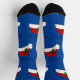 Custom design socks, just download your photo or artwork at the edit prompt, or choose our own Christmas design with Santa hat, Mistletoe and text! Select your background colours at the edit prompt and add your text. Designed by HAMbyWhiteGlove for all your custom, personalised and special gifts! Shown with a blue background.