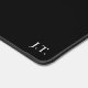 Black Desk Mat with custom monogram initials - minimal custom desk mat,minimalist personal large desk mat,minimalistic office desk mat,personalised black desk mat,plastic computer desk mat,simple stylish classic classy design,cool plain dark writing aesthetic,customised initialled monogram initials,add your own letters,personalised monogrammed text