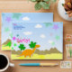 Custom Dinosaur Party Envelopes. Send your dinosaur party invites or birthday invitations in this cool envelope with a happy orange Diplodocus cartoon dino in a stone age landscape with trees, mountains, vulcanos and stars. This dinosaurs party envelope is fully customisable. Personalise with your name and personal back flap message to make your unique party invite envelope very special! Add your text(s) and images. A great dinosaurs envelope for your next dinosaur party or birthday greetings card! Unique party envelopes for the little big dinosaur fans!