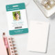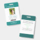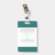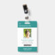 Your Health Care Company personalised Logo Photo Clip Name Badge for doctor, surgeon, nurse, dentist, employee, volunteer and any medical profession with caduceus medicine symbol on the back side. With custom Photo, Logo, Bar Code, Name, Department and additional informations. A fresh, sophisticated and clear design in teal turquoise green, light grey and white, with sans-serif fonts. Use this modern name tag badges for all of your staff for keeping any important informations with them in a simple way. Photo by Humberto Chavez.