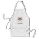 This custom apron design has an illustration of a blue-eyed Siberian Husky dog's face set against a light pink round background. Personalise this apron with your name or text of your choosing.