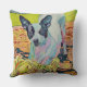 This custom dog art throw pillow was designed by taking a photograph my friend gave me of her rescue dog Bowie. The photograph was converted into a black and white print and the color and style restored with the use of colored pencils.