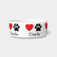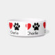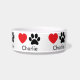 Custom Dog Bowl with Name, Paw Prints & Hearts