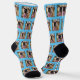 Wear your pet on your feet with these Custom Dog Face Pet Photo Socks. Pick your favourite pet picture (a vertical photo is best for this specific template) or you can keep the cute dog as shown. This fun design was created from a photo of the family pet. The template reveals the design as a pattern on the crew socks. Customisable bright blue background. Perfect gift idea for dog lovers!