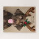 Why not enjoy Christmas with a custom jigsaw puzzle for holiday fun, featuring a Christmas photo of your pup in holiday garb! Add your own creative photo of your dog in his or her special Christmas outfit with the dog's name and tagline "our good boy" or "our good girl". Everyone will love it. Don't forget the fur baby