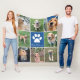 Custom Dog Photo Collage Blue Pet Paw Print Cute Fleece Blanket