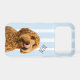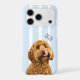 Show off your furry best friend everywhere you go with this personalized dog photo phone case. Featuring your dog’s photo and custom name on a soft blue striped background, this stylish case combines protection with personality.