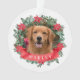 Custom Dog Photo with Name Poinsettia Wreath Ornament
