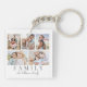 This simple and elegant boho-inspired keychain is a perfect way to celebrate family. The design features a space for five photos, with "Family" displayed underneath in a classic serif font. In soft script, there's room to add the family name, the first names of family members, or even a special message like a meaningful date or phrase—making it a great gift for family reunions, holidays, or everyday keepsakes. The clean white background and soft grey text give it a timeless and refined feel. Fully customisable, you can adjust the text, fonts, colours, and photos to create a personal and meaningful gift.