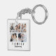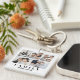 This simple and elegant boho-inspired keychain is a perfect way to celebrate family. The design features a space for five photos, with “Family” displayed underneath in a classic serif font in black. In soft script, there’s room to add the family name, the first names of family members, or even a special message like a meaningful date or phrase—making it a great gift for family reunions, holidays, or everyday keepsakes.
