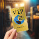 Custom personalised two sided name laminated VIP badge and lanyard for corporate and party events etc. Customizable plastic name tag with logo, photo and text.