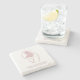 The coasters are gorgeous, a quality feel and heavy weight. They look like a precious archeological find. A rustic stone juxtaposed with a modern floral black and white print. I like the way the print goes slightly imperfect on the cut stone edges giving them a kind-of natural beauty.