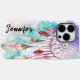 Artwork featuring a colourful Dreamcatcher. You can easily Personalise this Dream Catcher iPhone Case by adding Your Own Name or the Name of a Loved One. For Dreamers, Bohemian Boho Lovers, and Free Spirits.