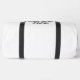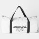 Embedded Image Description: Blank customisable duffle bag with reinforced handles and zippered main compartment, showing example of personalised print placement on water-resistant fabric.