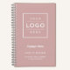 Add a professional look to your workspace with a custom company branded spiral notebook featuring a large space for your business logo with modern custom text that can be personalised with the name of the employee or business owner, business name, location, slogan, website, or other info. Makes a great corporate gift. Note, the light dusty rose pink background and white colour scheme can be modified.