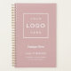 Add a professional look to your workspace with a custom company branded spiral business planner featuring a large space for your business logo with modern custom text that can be personalised with the name of the employee or business owner, business name, location, slogan, website, or other info. Makes a great corporate gift. Note, the light dusty rose pink background and white colour scheme can be modified.