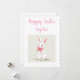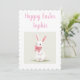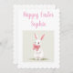 Customise with recipient’s name. A white Easter Bunny with a cute pink bow on a folded card. Great for kids and girly styles.