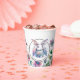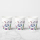 Elevate your baby shower with these bespoke paper cups, adorned with whimsical watercolor florals and a charming bunny rabbit, illustrated in delicate shades of pink, peach, lavender, and blue. Tailor these cups to your celebration by utilising the template fields to insert your personalised message. Perfect for an Easter-themed baby shower, these disposable cups add a touch of enchantment. Discover the coordinating baby shower theme at www.zazzle.com/dotellabelle.