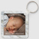 Unique, classic, cute and decorative keychain with a beautiful blue grey brown marble pattern. With the option to customise or personalise with name, text, and photo of your choice. This photo display makes an excellent keepsake gift for grandparents or new parents!