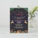 Unique, classic, trendy, and decorative Invitations, A distinctive Christmas invitation card that contains a design of Christmas trees and decorations and also has a golden reindeer on the sides, a unique card to congratulate your family with a "Merry Christmas" "Happy New Year" text quote in stylish faux gold font. Customise or personalise it with a family name (or individual names) of your choice on an elegant burgundy black-blue background. And a customisable season greeting message on the inside of the card. Click the "Customise It" Button to Change Fonts and colours for the One-of-a-Kind Product Unique.