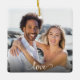 This custom simple elegant Love 2 sided hand lettered script Christmas ornament features two of your own photos, and the word "love" and the date in elegant hand lettered script. This is the perfect ornament for those in love, including husband and wife, the engaged couple, or boyfriend/girlfriend.