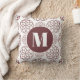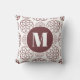 Chic custom elegant maroon circular pattern monogrammed pattern throw pillow. Customised with your monogram initial in white. Very stylish!