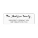 Create your own custom, personalised, simple, elegant, stylish, modern plain white family name return address label. Simply enter your name / family name / company name, and address. Perfect for both, home and business, personal and official mailings. Elegant return address labels for use on birthday, wedding, marriage anniversary, graduation, bridal shower, baby shower, holidays, christmas, or any other special occasion related mailings of the family.