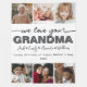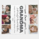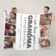 Create a sweet gift for a beloved grandma this mother's Day or grandma's birthday, or at the holidays with this 6 photos collage throw fleece blanket. "GRANDMA" appears in the centre in soft grey lettering, with your custom message and grandchildren's names overlaid.
