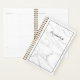 Custom elegant white marble stone gold spiral planner. Personalised weekly / monthly agenda book. Make your own cover design with stylish background texture image. Classy Birthday gift idea for friends, family, bride, coach, mum, dad, coworker, boss, colleague, school teacher, freelancer, hsuband, wife, co worker, manager etc. Unique office presents for him or her. Great for planning wedding, work, events and more. Golden spiral rings with marble pattern and luxurious brush script typography.