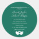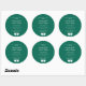 Customise these classic round stickers with your desired name, date, or message. Great for weddings and other occasions. Colour shown is emerald green. Use the template to create your own wedding stickers.