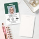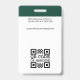 Create a professional appearance with a branded employee ID badge. This editable template can be personalised with your profile photo, name, job title, company logo and accreditation symbols. Return details are on the back, along with additional information, and a barcode or QR code. A simple and stylish design with an elegant serif font. Perfect for creating a cohesive branding experience, or simply to verify the identity of the wearer and display their qualifications. This identification badge is ideal for customer-facing roles and corporate settings — from business consultants and retail stores to medical professionals, hospital staff, office workers, conference teams, corporate events and more. Custom badges build brand identity and enhance security. Printed colours: very dark green, black and white.