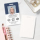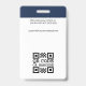 Create a professional appearance with a branded employee ID badge. This editable template can be personalised with your profile photo, name, job title, company logo and accreditation symbols. Return details are on the back, along with additional information, and a barcode or QR code. A simple and stylish design with an elegant serif font. Perfect for creating a cohesive branding experience, or simply to verify the identity of the wearer and display their qualifications. This identification badge is ideal for customer-facing roles and corporate settings — from business consultants and retail stores to medical professionals, hospital staff, office workers, conference teams, corporate events and more. Custom badges build brand identity and enhance security. Printed colours: very dark navy blue, black and white.