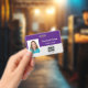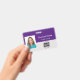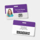 Create your own personalised employee name tags and badges using a vertical elegant modern template that is easy to add your own photo, company logo, Bar Code and other important information. A simple business design in purple and white & name and title with bar code. No minimum order.