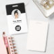 Easily personalise this Custom Business Minimalist Employee Name Badge with Photo, Scan Qr Code or Scan Bar Code and business logo. A simple business design with round photo, in modern black and white colours fully customisable in front and back sizes, sans-serif basic and modern fonts and a professional and clear look. Avaiable with lanyard, metal clip or with retractable. No minimum order.