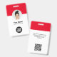 Easily personalise this Custom Business Minimalist Employee Name Badge with Photo, Scan Qr Code or Scan Bar Code and business logo. A simple business design with round photo, in red and white colours fully customisable in front and back sizes, sans-serif basic and modern fonts and a professional and clear look. Avaiable with lanyard, metal clip or with retractable. No minimum order.
