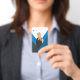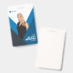 Personalize this modern employee name badge with your company logo, employee photo, name, ID number, or other custom text. This badge is available with a metal clip, lanyard, or a retractable reel. The design is easily customizable for your business. You can change the colors, fonts and optionally add content to the back like a barcode or return information. No minimum order quantity and no set up fee.