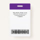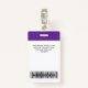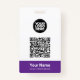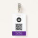 Easily personalise this Custom Administrative professional Name Badge without photo, featuring an easy copy and paste qr code template, Scan Bar Code and large business logo. A simple business design in purple and white colours fully customisable in front and back sizes, sans-serif basic and modern fonts and a professional and clear look, perfect for small business employee, boss, guests. These business id badges supplies are avaiable with lanyard, metal clip or with retractable. No minimum order, but save money and enjoy Zazzle discounts by multiple orders!