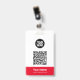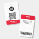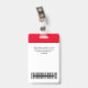 Easily personalise this Custom Administrative professional Name Badge without photo, featuring an easy copy and paste qr code template, Scan Bar Code and large business logo. A simple business design in red and white colours fully customisable in front and back sizes, sans-serif basic and modern fonts and a professional and clear look, perfect for small business employee, boss, guests. These business id badges supplies are avaiable with lanyard, metal clip or with retractable. No minimum order, but save money and enjoy Zazzle discounts by multiple orders!