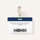 Easily personalise this Custom Employee Name Badge with Photo, Scan Bar Code and business logo, with lanyard included. A simple business design in navy blue and white colours fully customisable in front and back sizes, sans-serif basic and modern fonts and a professional and clear look. Avaiable with or without lanyard, metal clip or with retractable. No minimum order.