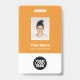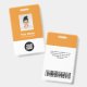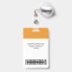 Easily personalise this tangerine orange Custom Employee Name Badge with Photo, Scan Bar Code and business logo. A simple business design in trendy tangerine orange and white standard colours fully customisable in front and back sizes, sans-serif basic and modern fonts and a professional and clear look. Avaiable with lanyard, metal clip or with retractable. No minimum order.