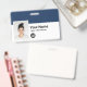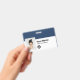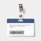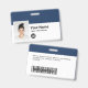 Easily personalise this Custom Employee Name Badge with Photo, Scan Bar Code and business logo, with metal clip included. A simple business design left-aligned in navy blue and white colours fully customisable in front and back sizes, sans-serif basic and modern fonts and a professional and clear look. Avaiable with or without lanyard, metal clip or with retractable. No minimum order.